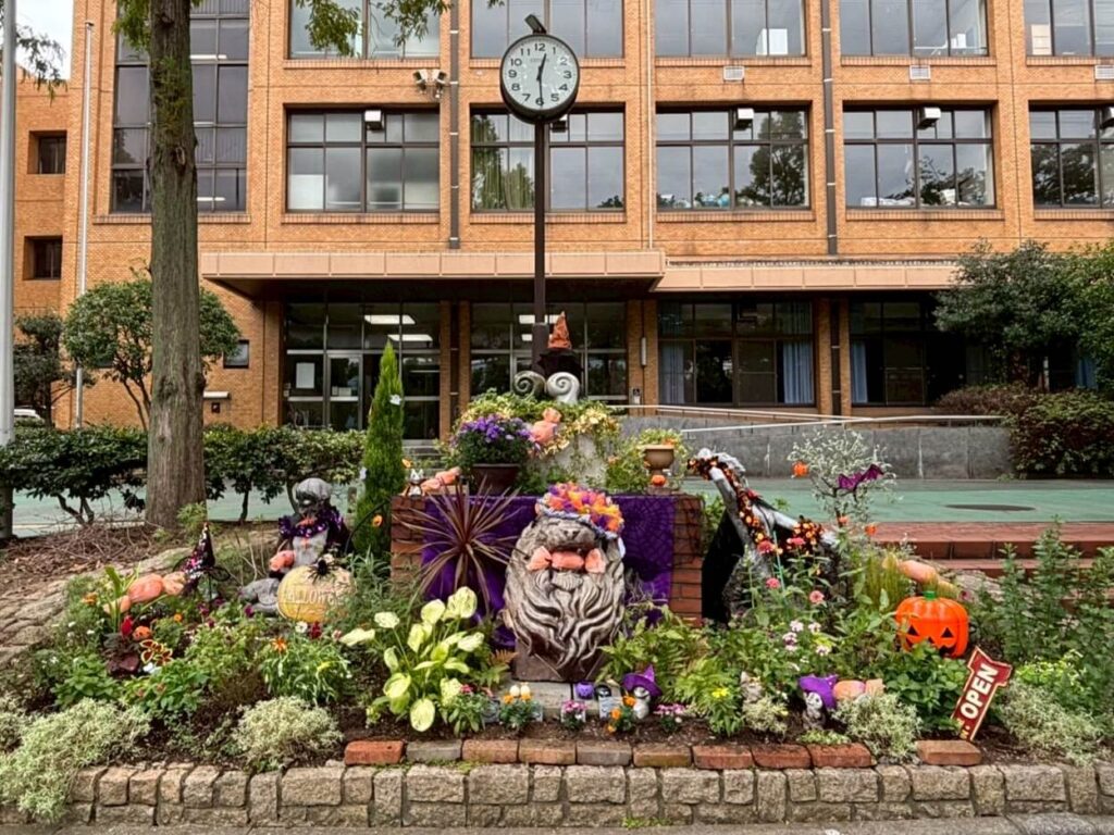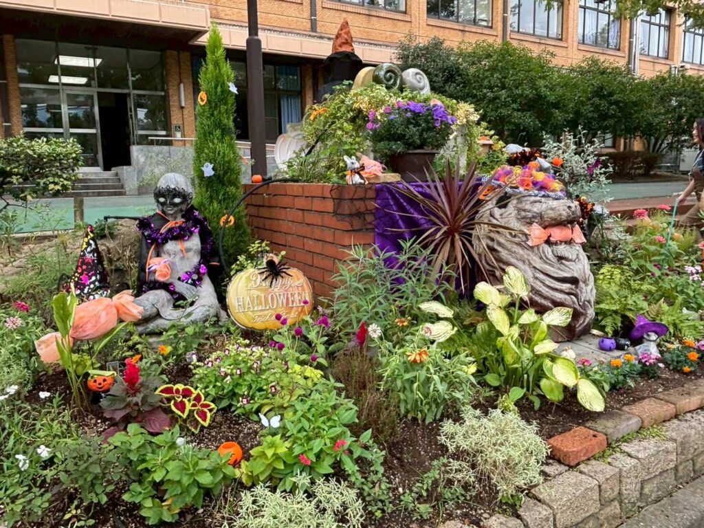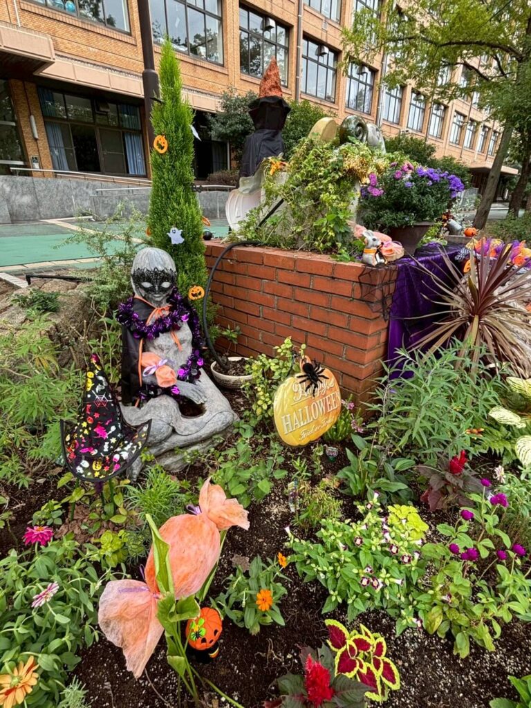 参加してくださった委員さんたちのアイデアあふれるハロウィン感いっぱいの花壇が出来上がりました。